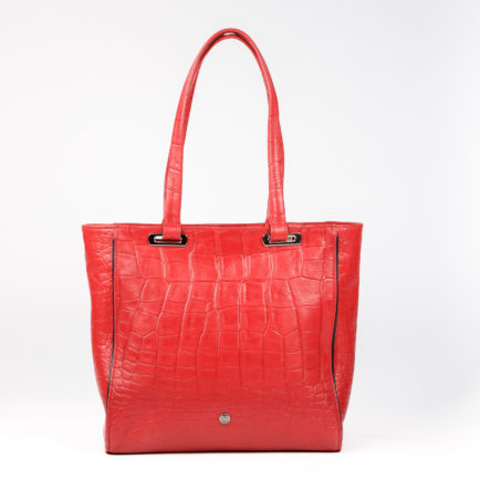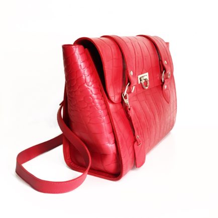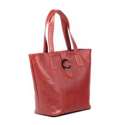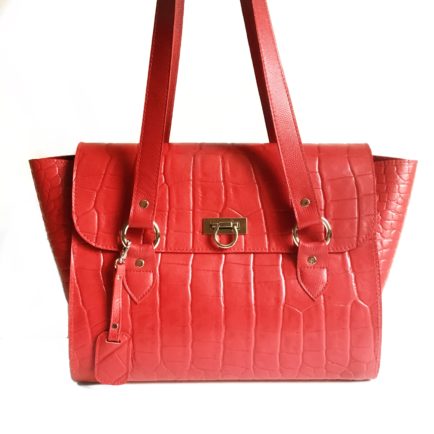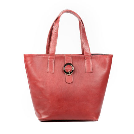 Red leather handbag