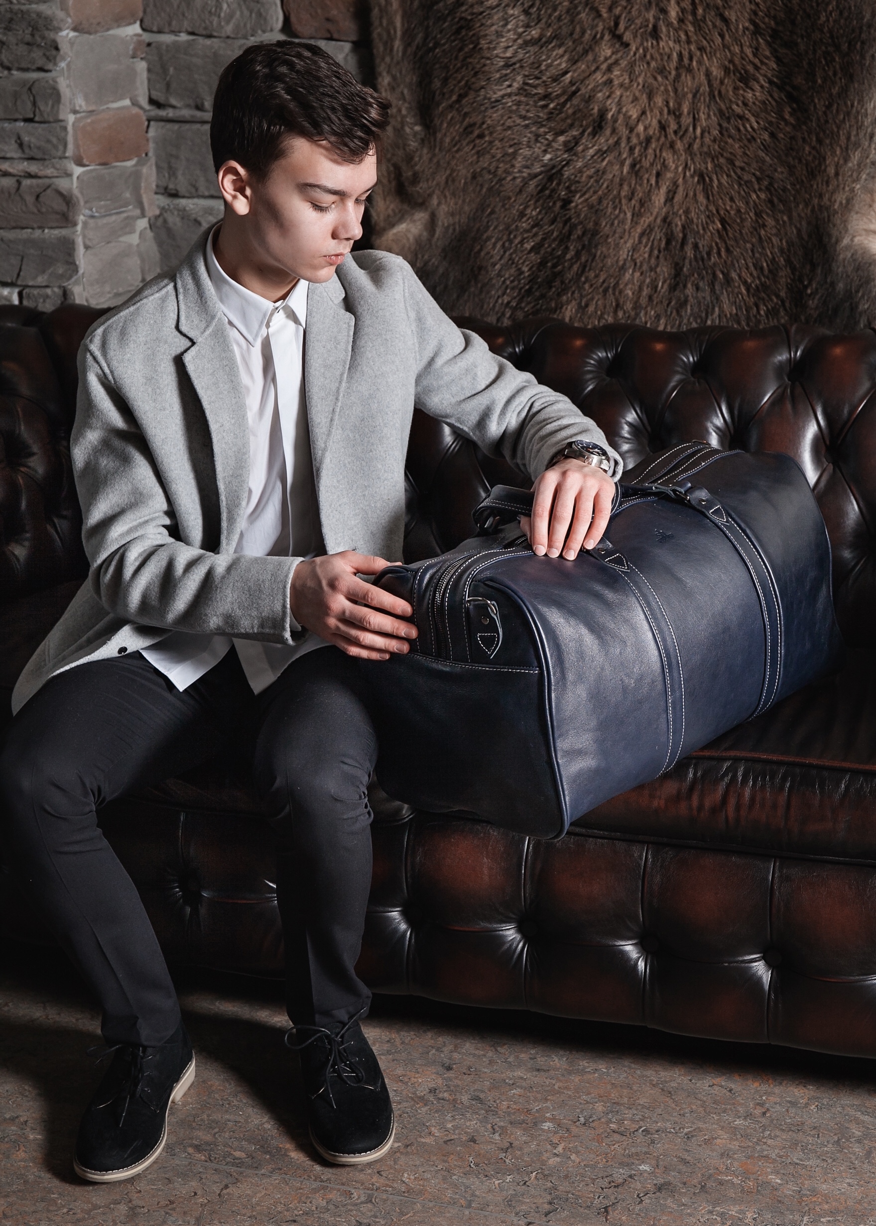 Leather large duffle bag