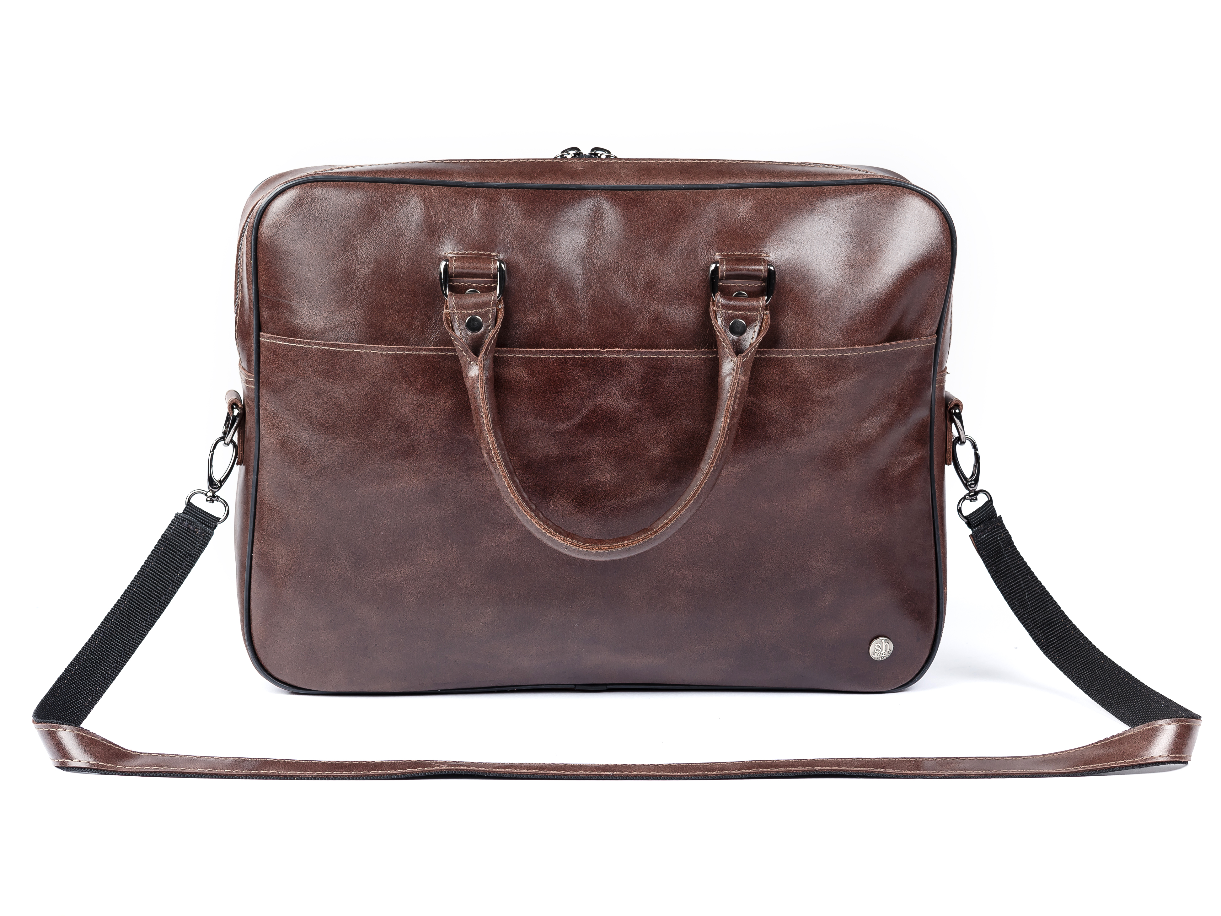 The leather brown briefcase for men, from ShLeatherBags, with simple, modern lines and timeless design features.