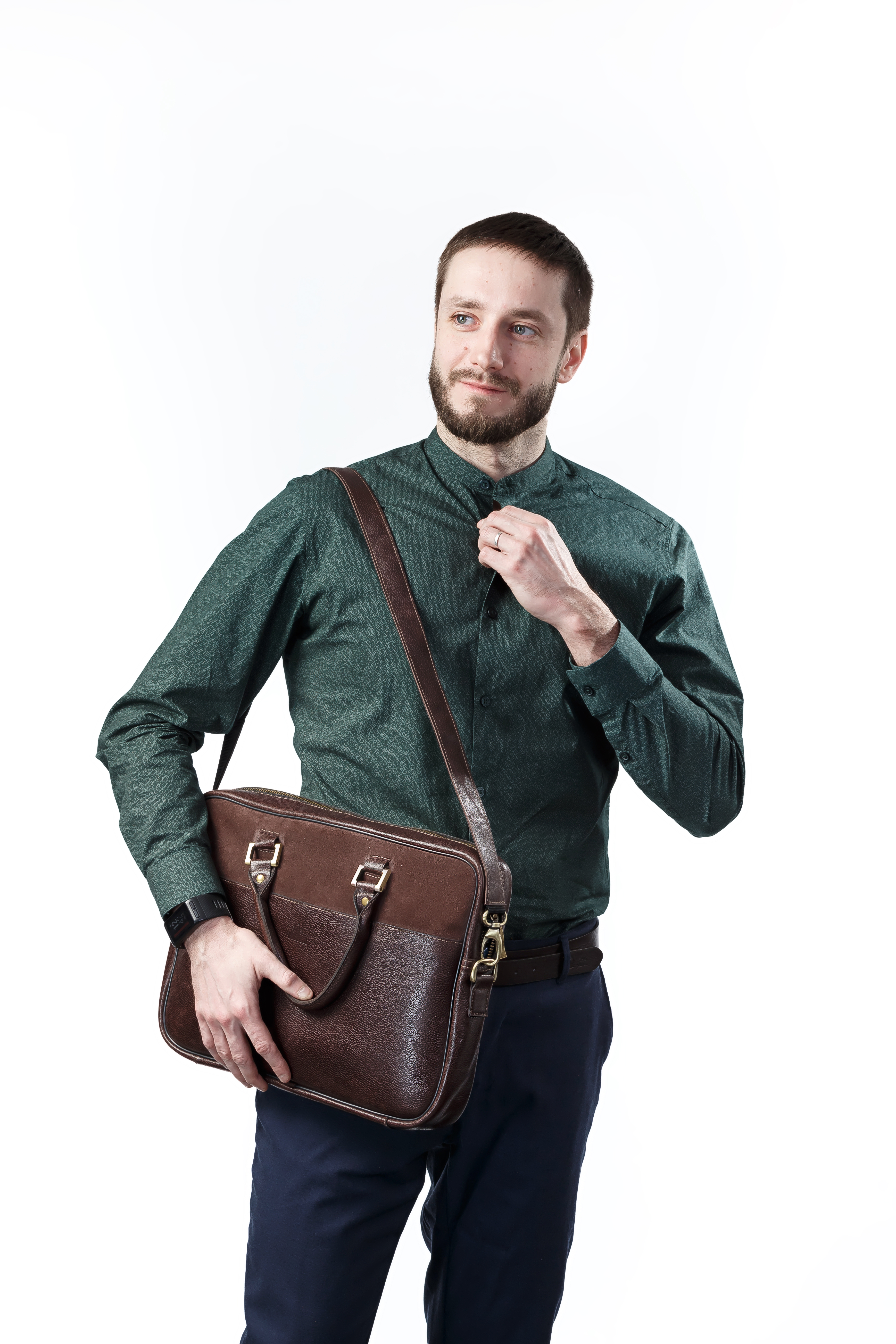 The leather dark brown briefcase, from ShLeatherBags, is practical and timeless.