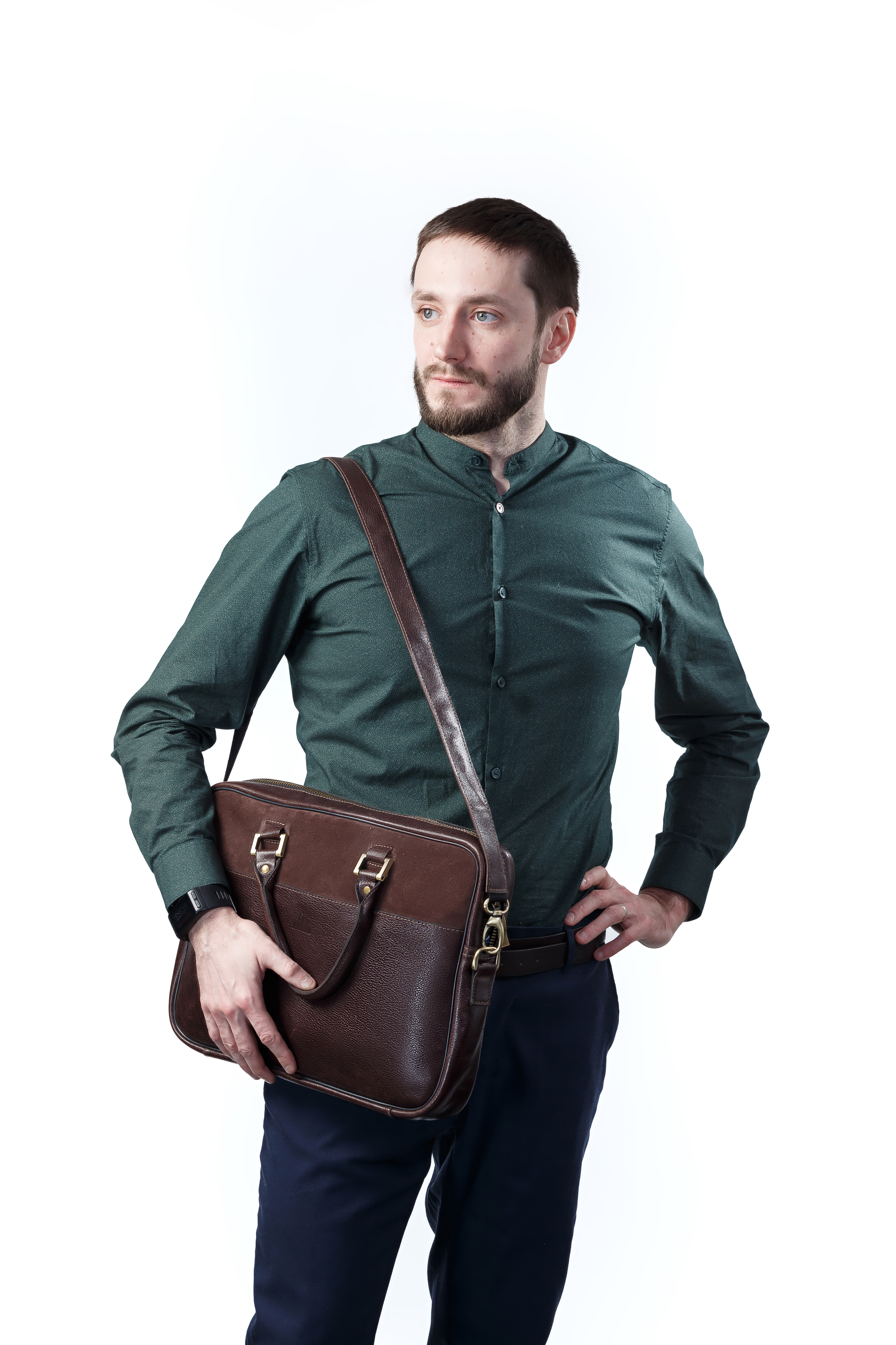 The leather large size briefcase, from ShLeatherBags, is practical and timeless. It is suitable for short trips, work, business meetings. It is very roomy, like a small duffel bag.