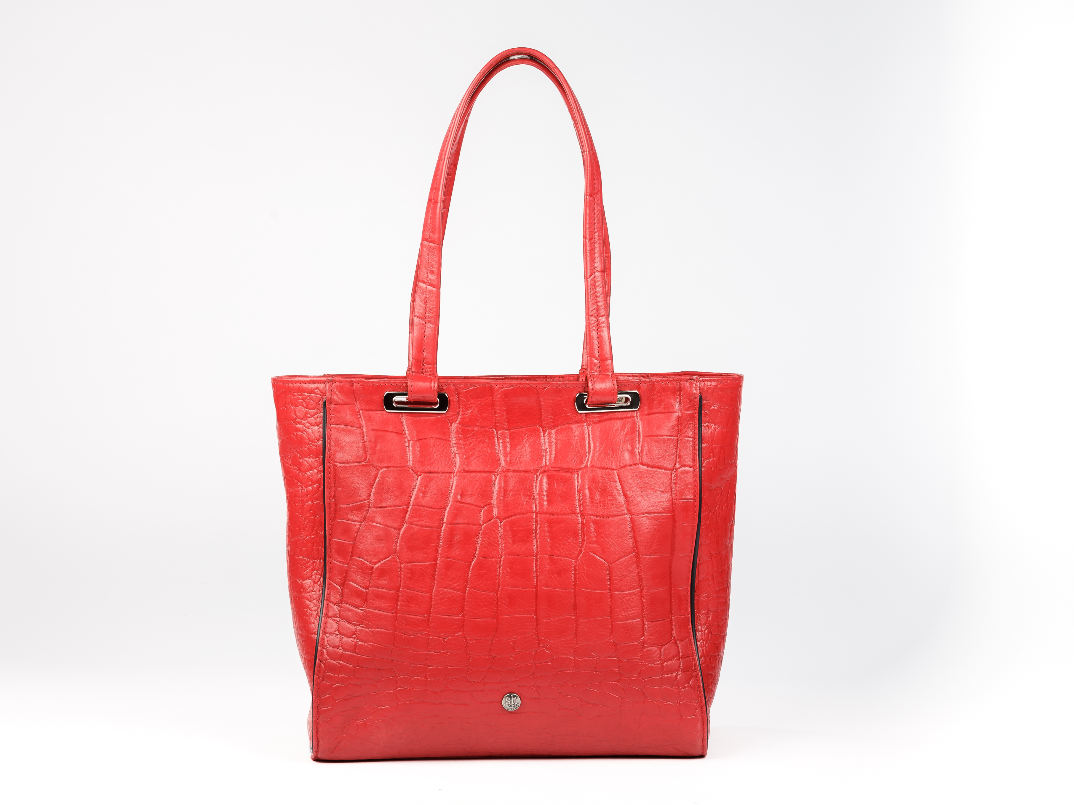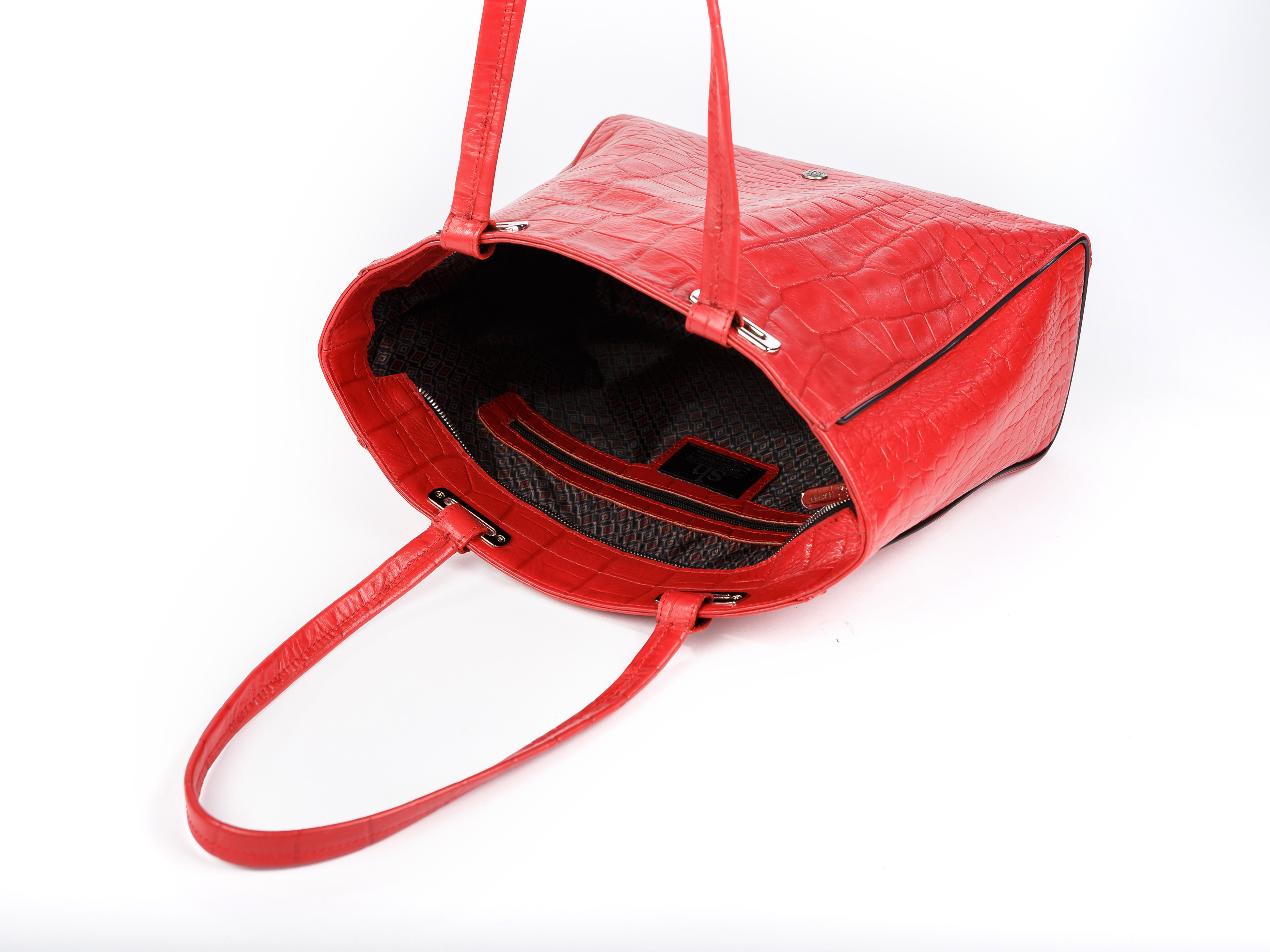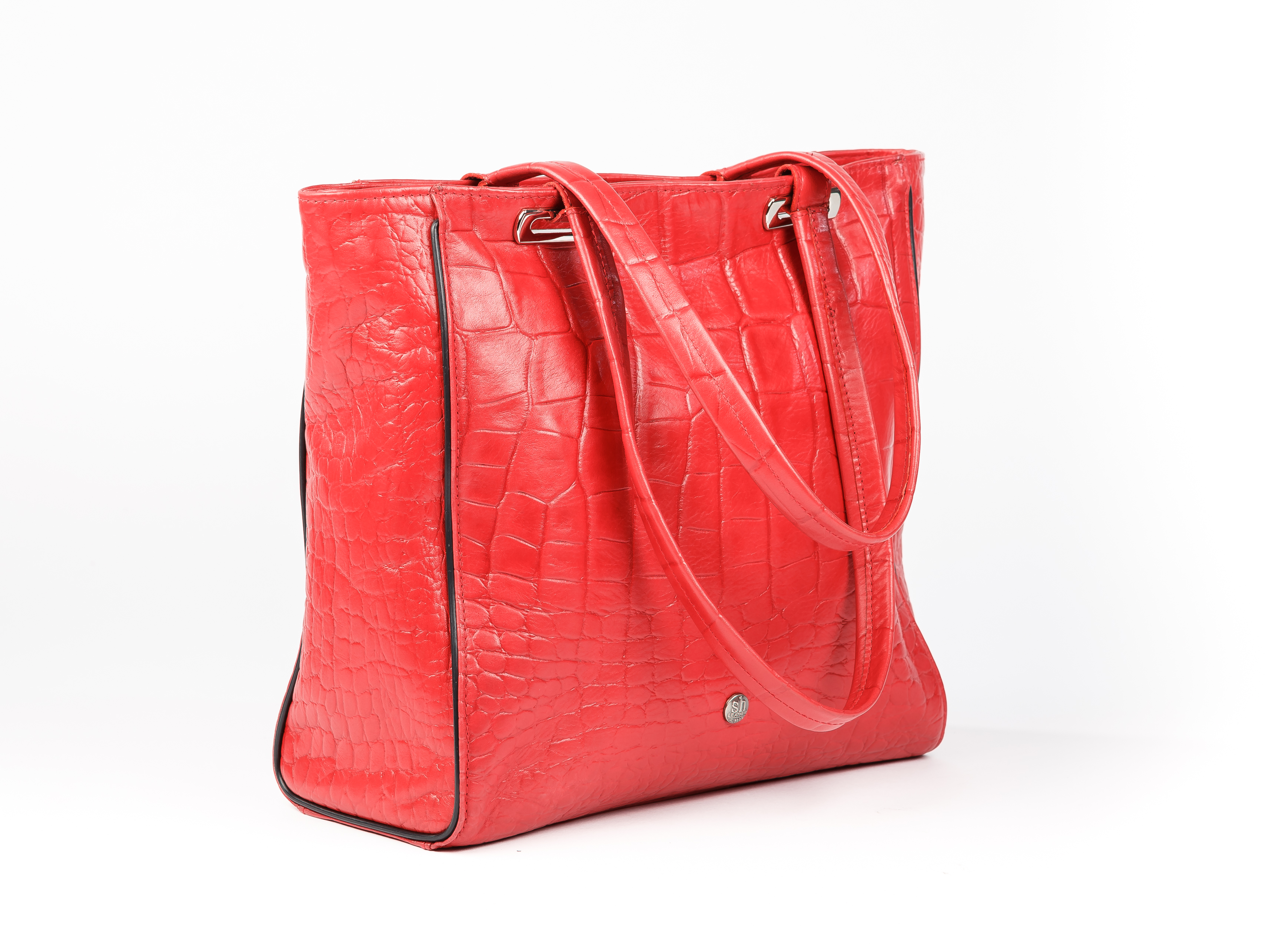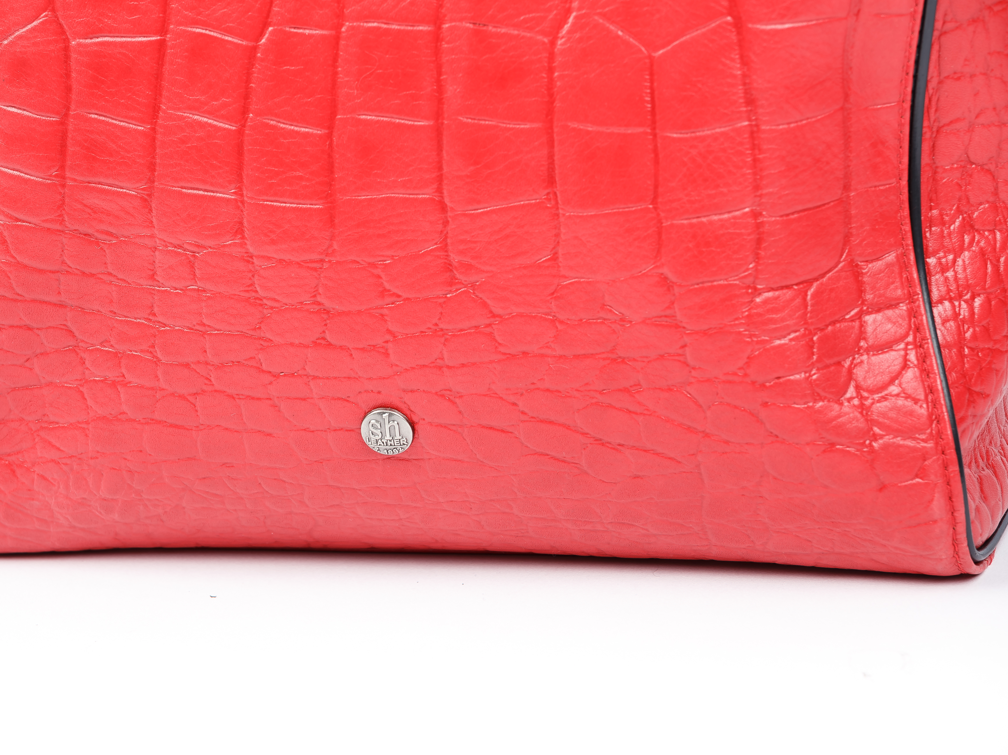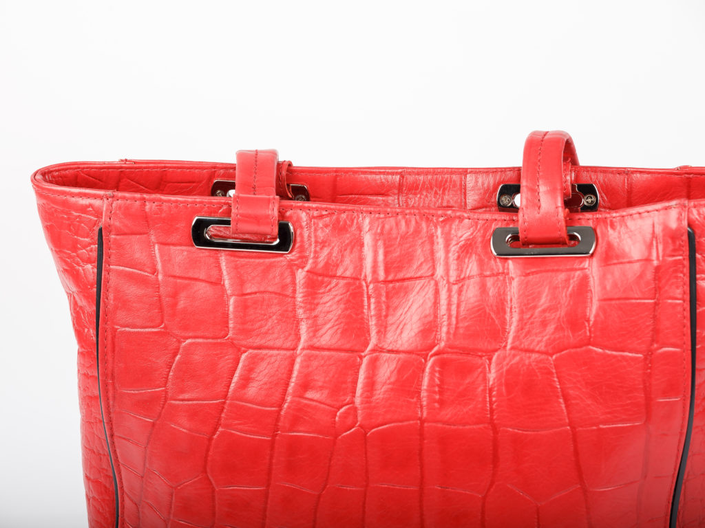 Red leather handbag